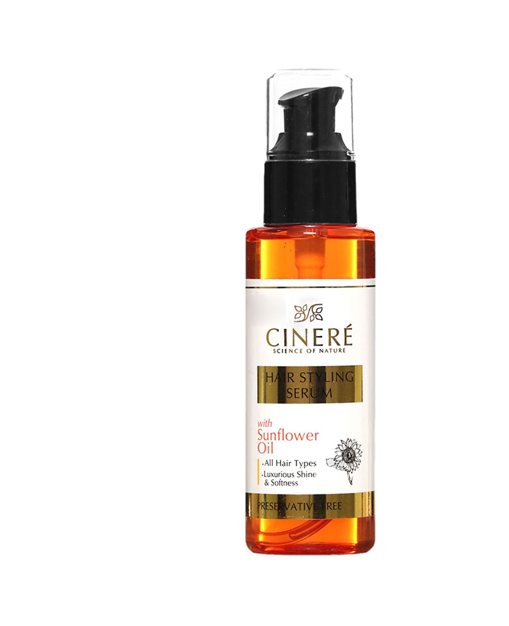 در ترکیبات این محصول از روغن گل آفتابگردان و روغن آرگان نیز استفاده شده است. روغن آفتابگردان حاوی ویتامین E و امگا 6 بوده و اثر مخرب UV روی موها را کاهش میدهد و به حفظ رنگ مو و جلوگیری از تغییر رنگ آن کمک مینماید. این روغن از نازک شدن موها جلوگیری نموده و به موها استحکام میبخشد. همچنین موجب افزایش درخشندگی مو و حفظ رطوبت آن نیز میشود. روغن آرگان موجود در این سرم مو حاوی مقادیر زیادی اسید چرب امگا 6 یا ویتامین F است که باعث نرمی مو و ترمیم موهای آسیب دیده میشود. این روغن از ایجاد موخوره در انتهای مو جلوگیری کرده و باعث حفظ رطوبت مو میشود. جهت استفاده از سرم روغن آرگان سینره توصیه میشود پس از شستشو در حالی که مو کمی مرطوب است مقدار اندکی از سرم را روی کف دست خود بریزید سپس آن را روی ساقه موها ماساژ دهید. پس از آن موها را سشوار بکشید و حالت دهید.