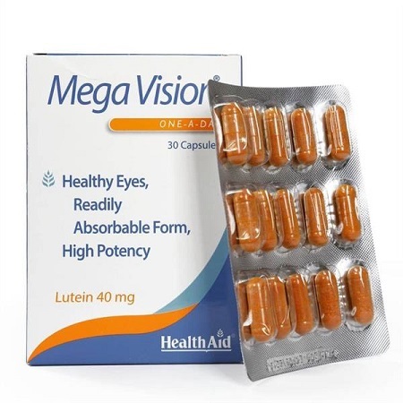 کپسول مگا ویژن 30 عددی حاوی 40 میلیگرم لوتئین (برگرفته از گل همیشه بهار)، با افزایش چگالی رنگدانه ماکولا از ابتلا به دژنراسیون ماکولا (تخریب لکه زرد) جلوگیری نموده و ضخامت ماکولای چشم (قسمت حساس به نور شبکیه و مسئول دید مستقیم و واضح) و ضمن کاهش خطر ابتلا به آب مروارید و کمک به کاهش خستگی چشم، باعث بهبود عملکرد بینایی و تقویت بافت چشم میشوند. لوتئین که از آن به عنوان ویتامین چشم نیز یاد میشود، در کاهش التهاب و بیماریهای التهابی چشم بسیار موثر بوده و با مهار از دست رفتن بیش از اندازه رطوبت چشم، به عنوان یک عامل تاثیرگذار در درمان خشکی چشم نیز موثر است.کاروتنوئیدهای زرد رنگ و طبیعی لوتئین، مواد اصلی بافتهایی هستند که در بیشتر قسمتهای چشم وجود دارند. در واقع لوتئین به عنوان فیلتر حفاظت کننده ماکولای چشم در برابر نور آبی و محدود کردن اثر استرس اکسیداتیو در اطراف سلولهای چشمی، نقش مهمی در سلامت چشم و بینایی دارد. درضمن شبکیه و بخش ماهیچهای چشم عمدتا برای عملکرد صحیح، به لوتئین متکی هستند. به همین دلیل مصرف لوتئین به جلوگیری از ضعف عضلات، که سبب آشفتگی و تاری دید میشود، کمک میکند. مصرف صحیح و مناسب لوتئین به جلوگیری از آب مروارید در چشم افراد مسن نیز کمک میکند. همچنین لوتئین با پشتیبانی از عملکرد مغز و افزایش سرعت پردازش بصری موجب افزایش قدرت حافظه، یادگیری و افزایش بهرهوری کلی مغز میشود.
