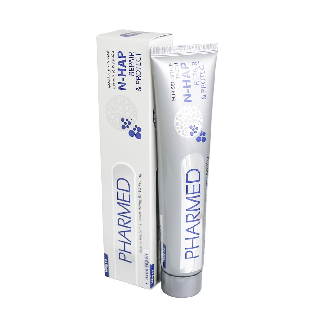خمیر دندان نانو فارمد حاوی نانو هیدروکسی آپاتیت (N-HAP) است و این ماده میزان حساسیت را در دندانهای حساس کاهش میدهد. این محصول مخصوص افرادی که دارای دندانهای حساس هستند فرموله شده اما مزایای دیگری نیز دارد. با هر بار استفاده از این خمیر دندان کلیه جرمهای دندان از روی دندان شما پاک شده و دندانی سفید و براق خواهید داشت. این خمیر دندان به ترمیم مینای دندان نیز کمک میکند. خمیر دندان فارمد مورد تائید انجمن دندانپزشکان عمومی ایران است.