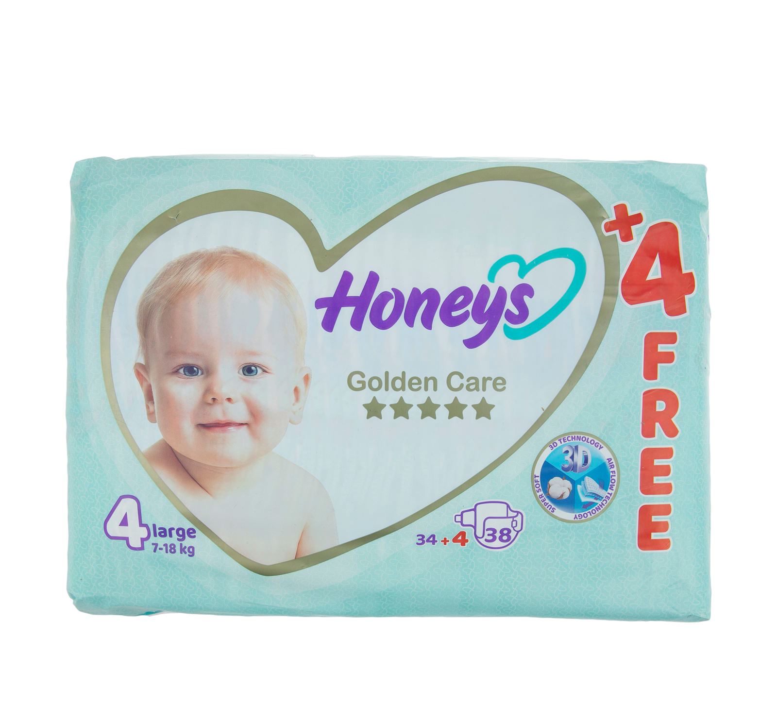 پوشک بچه سایز 4 مناسب 7 تا 18 کیلوگرم هانیز 38 عددی