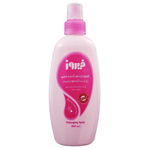 اسپری نرم کننده مو صورتی فیروز باعث باز شدن آسان گره مو می شود و از کشیدگی موها هنگام شانه کردن جلوگیری می کند.